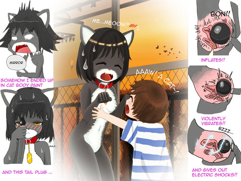 [紳士財閥] 全裸に猫のボディペイント!アナル尻尾で強制オナニー [英訳]
